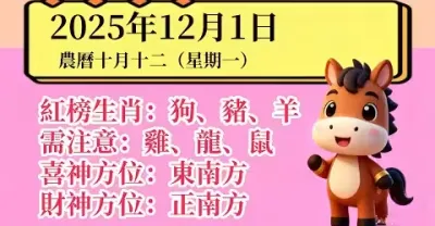 明日小運播報~2025年12月1日(星期一)農曆十月十二