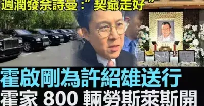 霍啟剛為許紹雄送行,霍家800輛勞斯萊斯開道,周潤發佘詩曼送別契爺走好,歐陽震和8位好友華扶靈