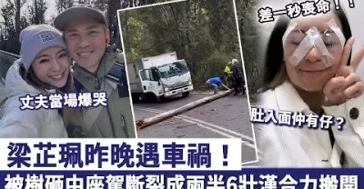 死裡逃生!梁芷珮昨晚遇車禍,被樹砸中座駕斷裂成兩半,6壯漢合力搬開,丈夫當場爆哭:肚入面仲有仔! #梁芷珮